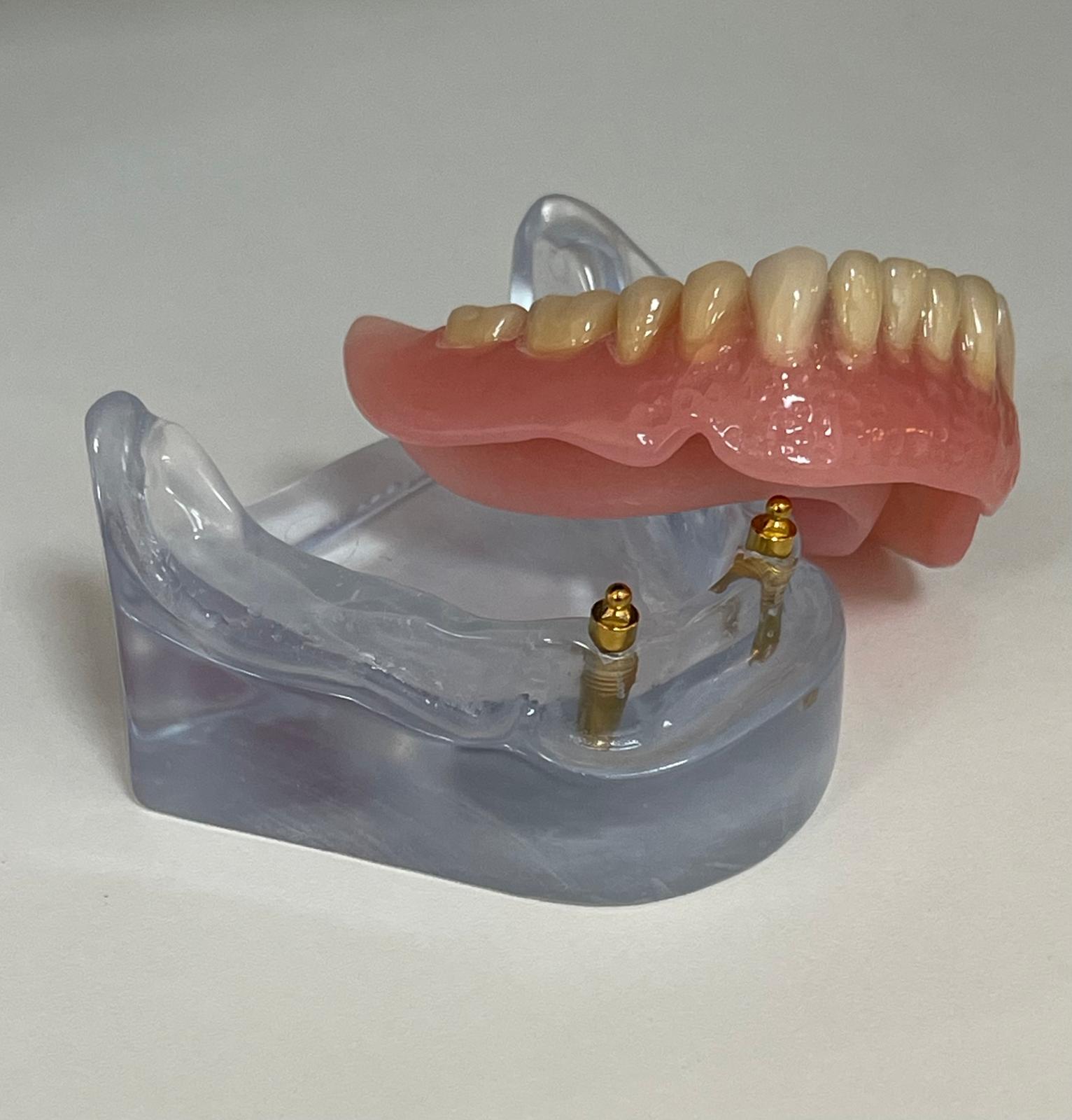 Een klikgebit is een kunstgebit dat vastklikt op implantaten in de kaak.